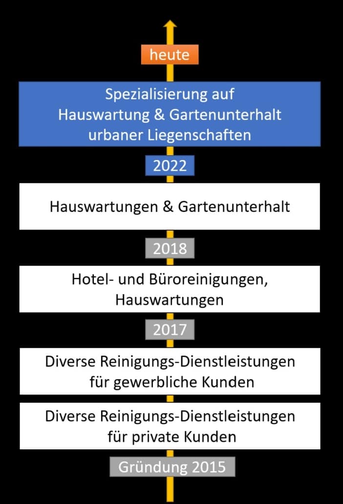 Auf dem Bild sehen Sie einen Überblick über unsere Dienstleistungen im Verlauf der Jahre.